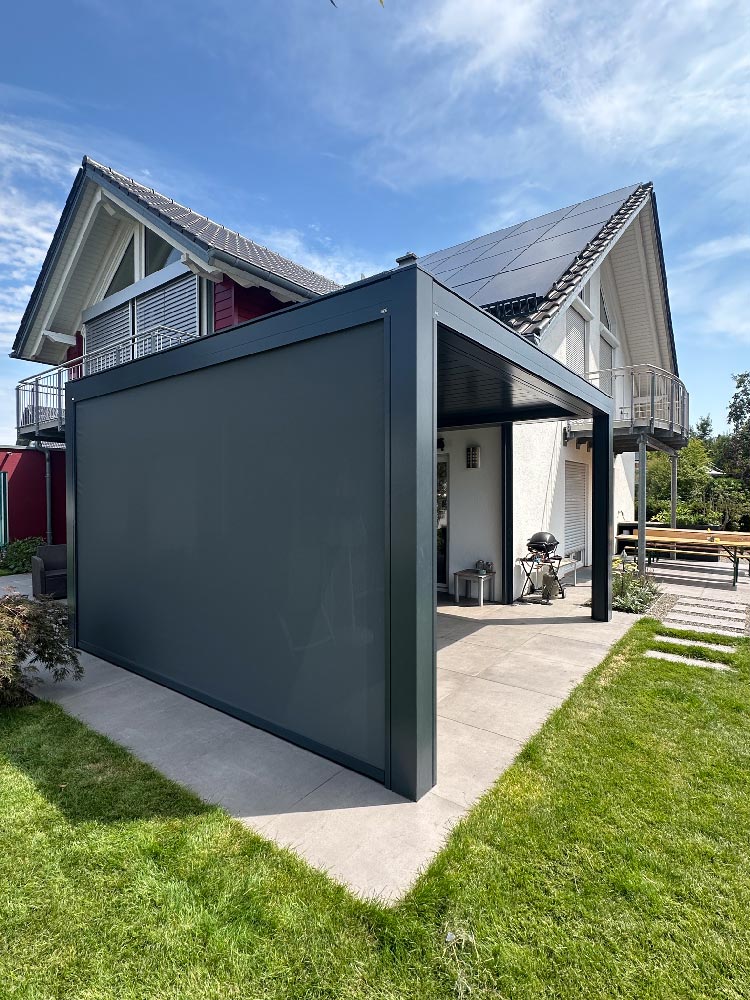 Unsere Systeme lassen sich optisch an Ihre Architektur anpassen und können auf Wunsch mit zusätzlichen Funktionen wie Wind- oder Regensensoren ausgestattet werden.