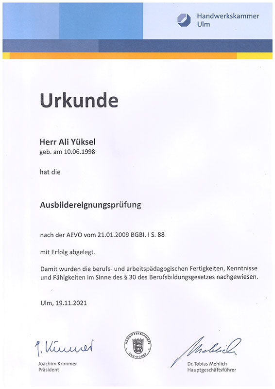 AUSGEZEICHNET Basierend auf 26 Bewertungen Stefan PflugTrustindex überprüft, ob die Originalquelle der Bewertung Google ist. Vom ersten Beratungsgespräch bis zur finalen Montage: ESA Metallbau hat uns auf ganzer Linie überzeugt! Die Kombination aus handwerklicher Präzision, ehrlicher Kommunikation und moderner Umsetzung verdient ein großes Lob. Besonders beeindruckt hat uns die saubere und termingerechte Ausführung – keine Ausreden, kein Wenn und Aber. Ob Geländer, Treppen oder Sonderanfertigungen – hier merkt man: Das Team versteht sein Handwerk und lebt es mit Leidenschaft. Ein zuverlässiger Partner, wie man ihn sich in der heutigen Zeit nur wünschen kann. Vielen Dank für die tolle Zusammenarbeit – wir freuen uns schon auf das nächste Projekt! Evelyn MöhrleTrustindex überprüft, ob die Originalquelle der Bewertung Google ist. Eine absolut empfehlenswerte Firma mit top Beratung, immer sehr freundlich und kompetent .Hervorragende Ausführung und absolut korrektem Preis- Leistungsverhältnis. Wir können sie nur weiterempfehlen. Susanne ImhofTrustindex überprüft, ob die Originalquelle der Bewertung Google ist. Wir waren sehr zufrieden mit der Abwicklung unseres Auftrages. Vom Erstgespräch bis zum fertigen Produkt immer professionelle und kompetente Beratung, und dazu noch sehr unkompliziert und super freundlich bei der Anpassung unserer Wünsche. Können wir jederzeit weiterempfehlen. Ömer YükselTrustindex überprüft, ob die Originalquelle der Bewertung Google ist. Nach dem Bau meines Hauses hatte ich bei ESA Geländerbau Biberach eine offene Garage, die ich gerne mit einer Tür verschließen wollte. Ich habe der Firma meine Ideen vorgestellt, und gemeinsam haben wir eine perfekte Lösung entwickelt: eine maßgefertigte Flügeltür. ESA war von Anfang an sehr kreativ, offen für meine Wünsche und hat sehr sauber und präzise gearbeitet – genau das, was ich als Fachmann aus der Metallbranche erwarte. Die Zusammenarbeit war unkompliziert, freundlich und auf einem sehr hohen handwerklichen Niveau. Besonders schön: Zwei meiner Nachbarn waren von der Umsetzung so begeistert, dass sie sich exakt dieselbe Konstruktion ebenfalls von ESA anfertigen ließen. Ich bin absolut zufrieden mit dem Ergebnis und kann ESA Geländerbau jedem empfehlen, der Qualität und Zuverlässigkeit sucht. Vielen Dank und weiterhin viel Erfolg! Pero PeharTrustindex überprüft, ob die Originalquelle der Bewertung Google ist. Richtig professionelle Arbeit!!!! Die Beratung war hervorragend und die Ideen und Lösungen haben geholfen, dass wir genau das bekommen haben, was wir uns vorgestellt haben! Die Arbeiten wurden detailliert und mega ordentlich ausgeführt. Wir sind so froh, dass es auch noch Handwerker gibt, die mit Leidenschaft ihre Arbeit absolvieren!!! Wärmstens zu empfehlen!!!!!! Grüße Pero Pehar B A MTrustindex überprüft, ob die Originalquelle der Bewertung Google ist. Ich kann nur positiv bewerten, tolle Arbeit in kurzer Zeit alles geplant und aufgebaut! Sehr kompetente , zuverlässige Firma und Mega tüchtige Arbeiter.. Vielen Dank an die Firma ESA! Elif ArslanTrustindex überprüft, ob die Originalquelle der Bewertung Google ist. Sehr zufrieden- top Preis-Leistung! Dankeschön 🌹 Daniel KecenkoTrustindex überprüft, ob die Originalquelle der Bewertung Google ist. Pragmatisch und Schnell. Gute Arbeit, Danke Yüksel! Hasan AyazTrustindex überprüft, ob die Originalquelle der Bewertung Google ist. **5/5 Sterne – Herausragende Leistung im Metallbau!** Die ESA Metallbau hat mich mit ihrer präzisen Arbeit und exzellenten Qualität absolut überzeugt. Von der Beratung bis zur Fertigstellung war der Service professionell, transparent und kundenorientiert. Das Team ist kompetent, freundlich und immer flexibel bei individuellen Wünschen. Ob Geländer, Treppen oder individuelle Metallkonstruktionen – die Ergebnisse sind erstklassig und langlebig. Ich kann ESA Metallbau wärmstens empfehlen und werde sie definitiv wieder beauftragen. Vielen Dank für die tolle Arbeit! 👍🌟